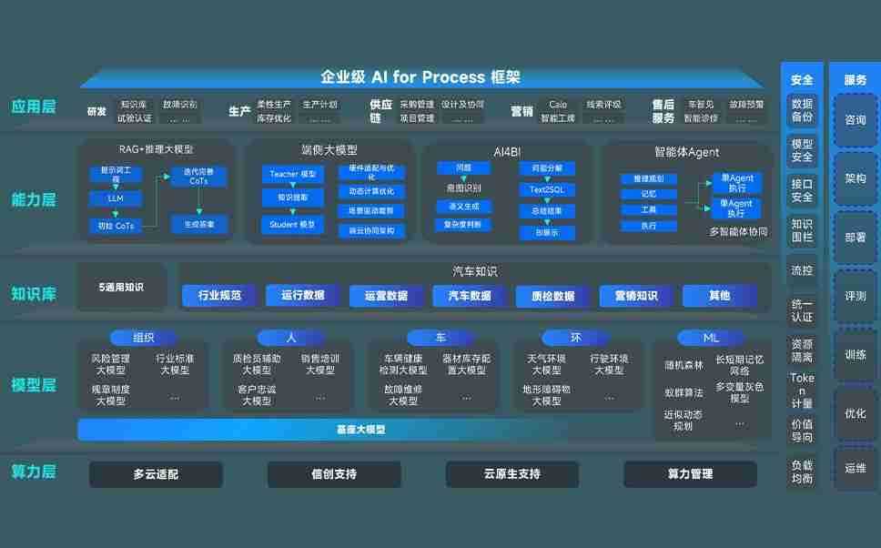 15VIP太阳集团问学智车解决方案是一套基于AI技术的汽车行业智能化系统,,,覆盖从底层算力到顶层AI应用的全栈方案。。方案由算力层、、、模型层和应用层组成:算力层,,,,方案支持多种一体机配置,,,具备云端灵活部署、、、、多云适配以及动态优化计算资源的能力;模型层,,,,15VIP太阳集团问学平台版提供了企业级AI应用一站式构建与管理平台,,,,支持基于后训练强化技术的汽车企业专属模型的训练、、、评测和运营;应用层,,,15VIP太阳集团问学DeepSeek版提供包括超级员工、、、智能招采、、、、智能营销、、、、智能客服、、、AI for BI等一系列解决方案,,,,可助力汽车行业实现数字化转型,,,让管理更智能、、响应更敏捷。。